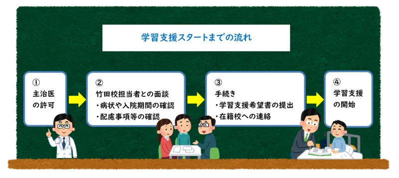 また、担任もしくは教頭先生に竹田校で学習支援を受けるようになったことを連絡してください。